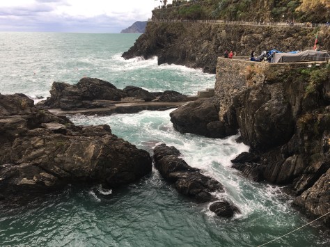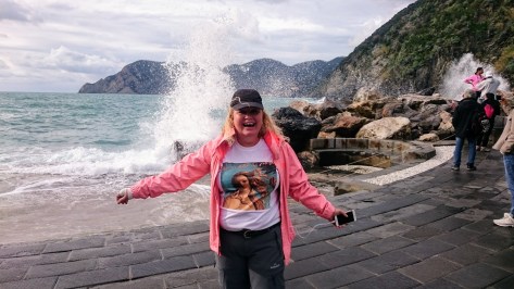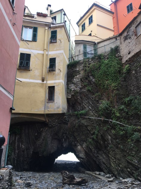 Next stop is Venazza the fourth town. It has a busy market place and there is a hole in the rock wall through which we can see the sea surging!
