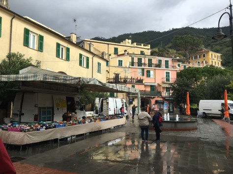 We travel to Monterosso the fifth town and furthest from La Spezia and arrive with a rain shower. Over the next hour we have sunshine and another shower.