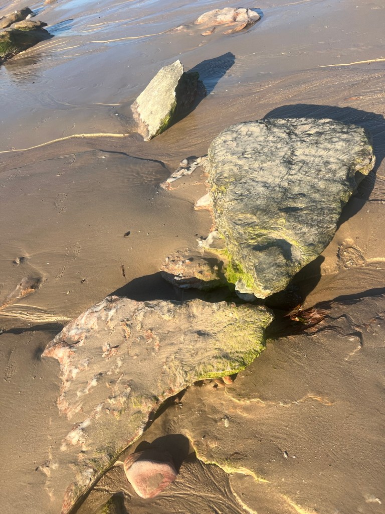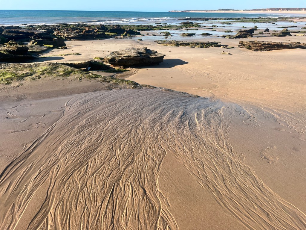 The beach is lovely and currently at low tide with an amazing 7 metre tide change (probably due to the full moon this week) so goes out a long way revealing all sorts of beautiful rock and sand sculptures along the coast line.