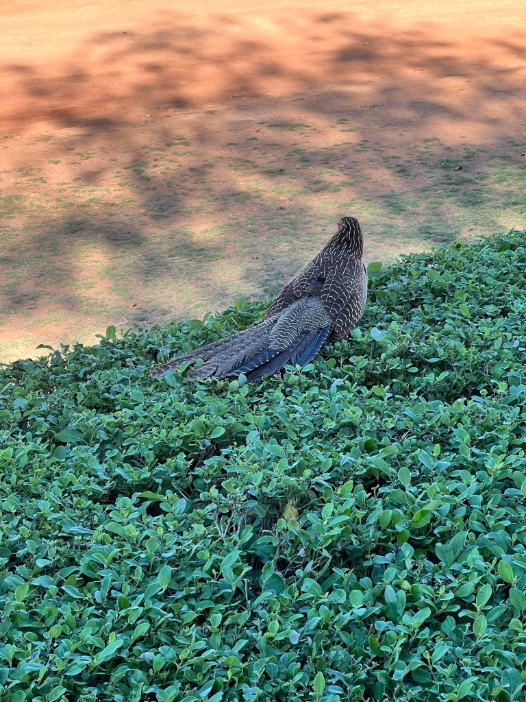 In the cool of the late afternoon I see a pheasant walking across the top of the hedge next to the van and some White breasted Woodswallows I think, high in the treetops. If I’m correct they are related to the Artamidae family of Butcher birds, Currawongs and Magpies here in Australia.