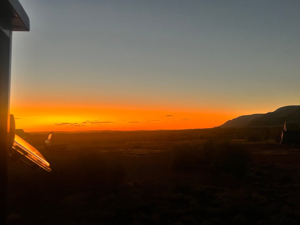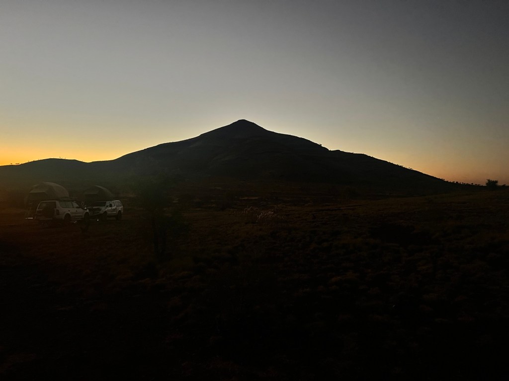It’s another spectacular sunset and then I’m awake early and catch sunrise behind our Mt Nameless.