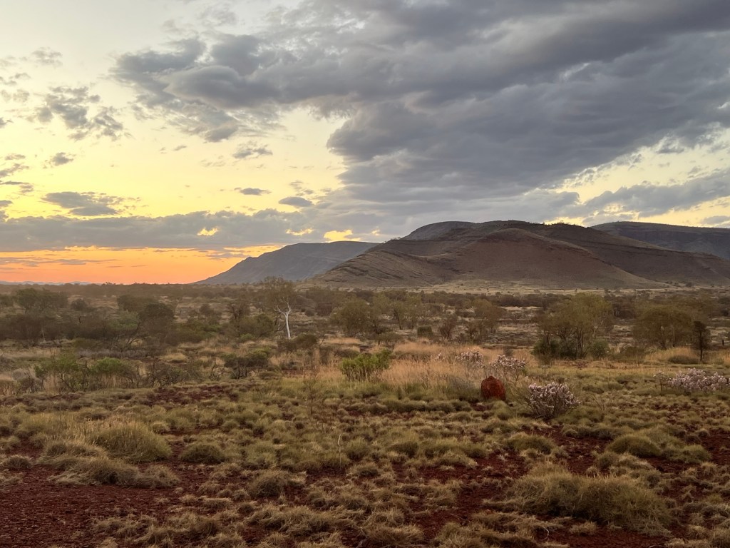 It sits in front of Mt Bruce from this angle and we have a lovely view of Hamersley Ranges in the opposite direction. After dark, I see a huge amount of lights in the distance which we think are from the Marandoo Mine Camp.